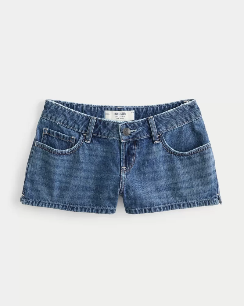 Ultra Low-Rise Dark Wash Mini Denim Shorts