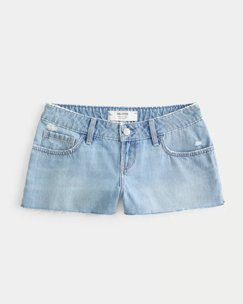 Ultra Low-Rise Ripped Medium Wash Mini Denim Shorts