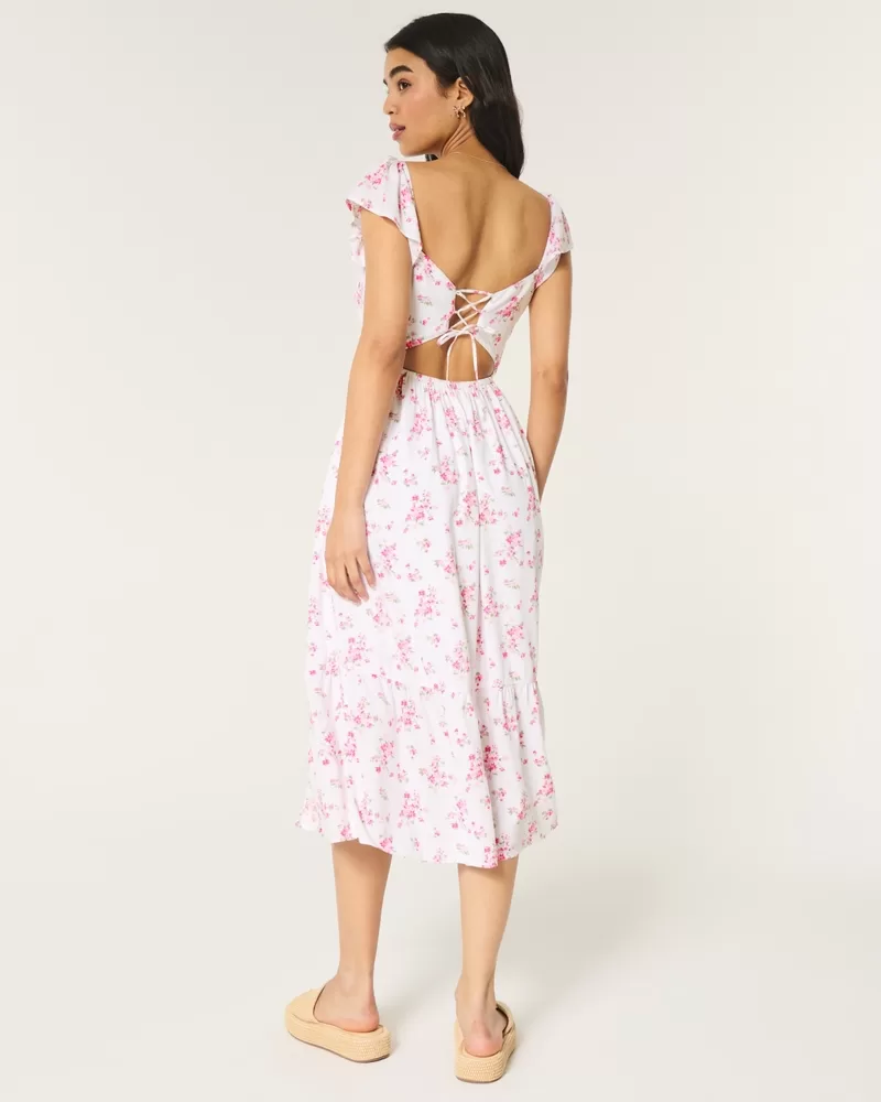 V-Waist Open Back Midi Dress