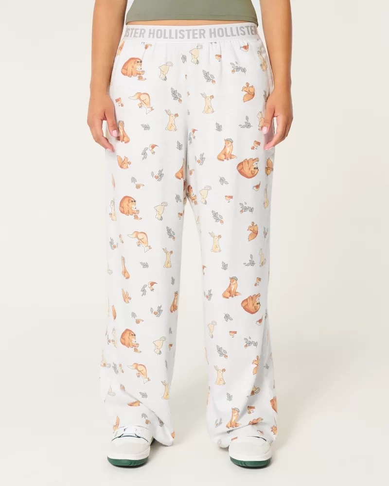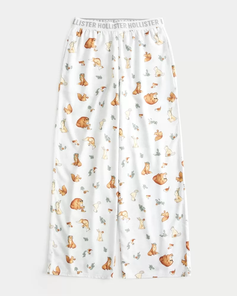 Super soft and cozy pajama pants designed with a low-rise waist and wide-leg silhouette. Soft banded waist with logo details, pockets.