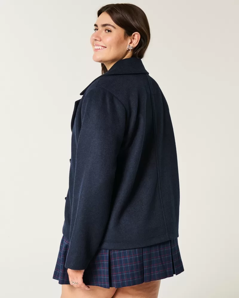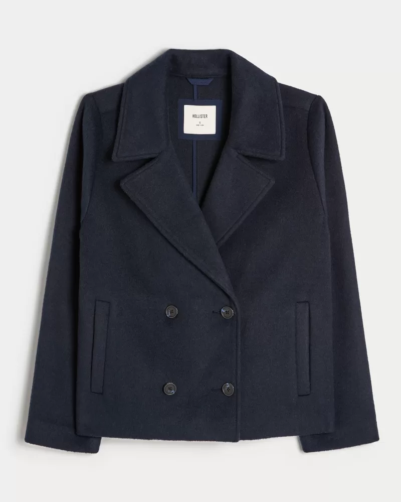 A classic peacoat in a soft wool blend, featuring a button closure, front pockets and interior pocket.